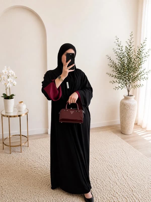 ✨ Abaya bicolore bordeaux ✨ Magnifique abaya fluide et légère avec manches bordeaux, idéale pour un look à la fois sobre et raffiné 🤍 📏 Longueur : 140 cm 📐 Taille unique : convient du 34 au 44 🇮🇹 Fabriquée en Italie 🌿 Tissu fluide et léger, confortable à porter Parfaite pour toutes les occasions : quotidien, événements ou sorties. N'hésite pas à me contacter pour plus d'infos 💌
