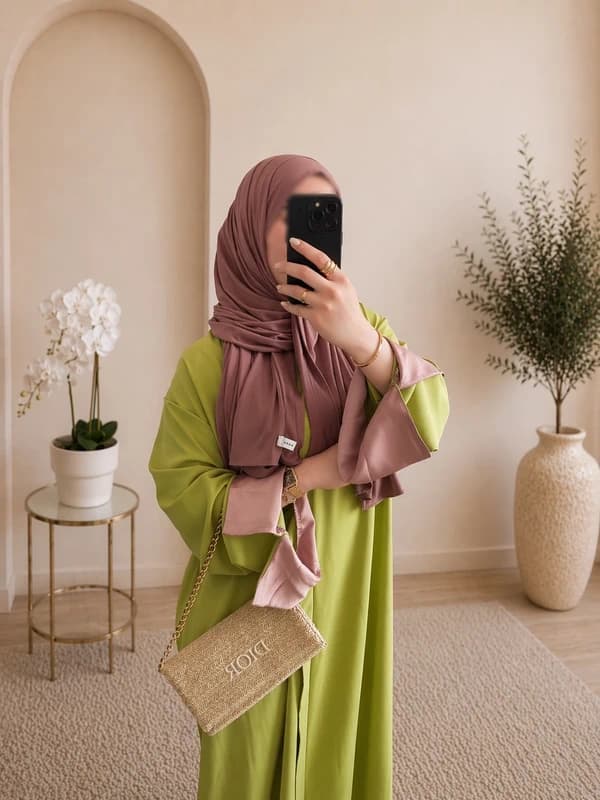 ✨ Abaya pistache élégante avec manches roses ✨ Magnifique abaya fluide et légère, idéale pour un look à la fois sobre et raffiné. Les manches roses apportent une touche chic et originale 🤍 📏 Longueur : 140 cm 📐 Taille unique : convient du 34 au 44 🇮🇹 Fabriquée en Italie 🌿 Matière agréable, fluide et confortable à porter Parfaite pour toutes les occasions : quotidien, événements ou sorties. N'hésite pas à me contacter pour plus d'infos 💌